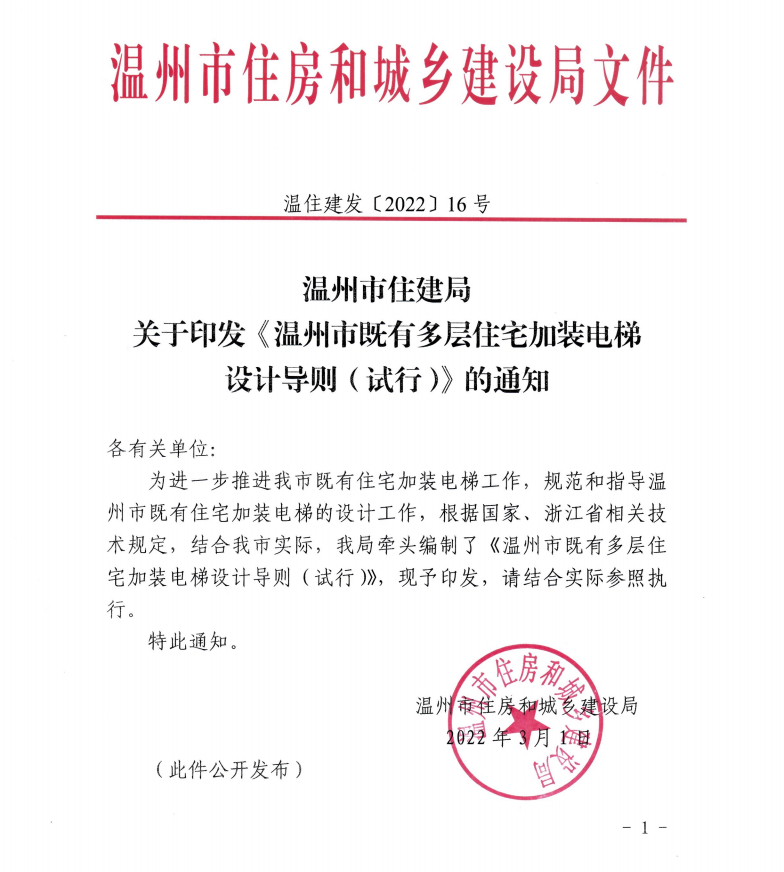 为适应经济社会发展和应对人口老龄化,完善既有住宅使用功能,由工业院低碳研究所副主任万志美负责主持编制的《温州市既有多层住宅加装电梯设计导则》于近日发布。...